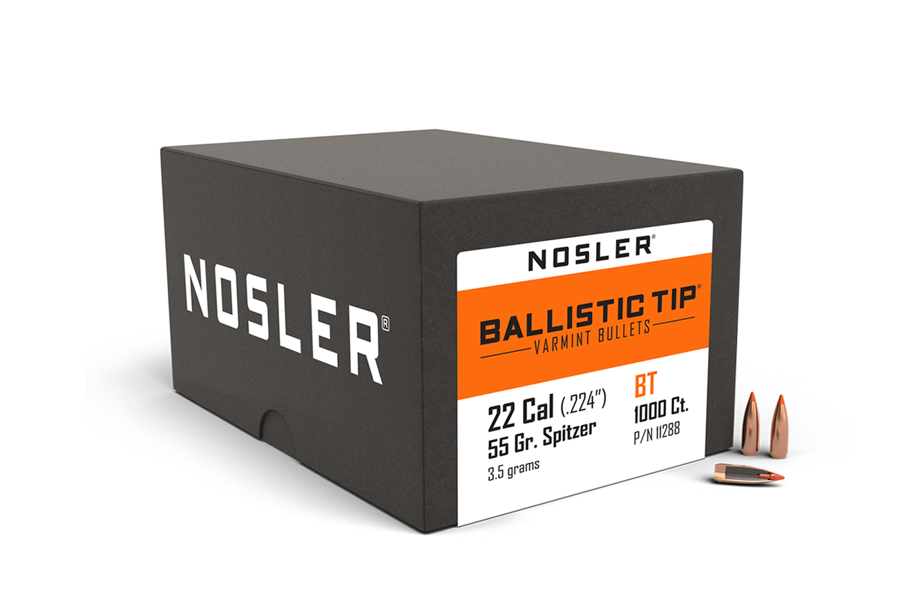 Nosler Ballistic Tip Varmint Bullets 22 Caliber (224 Diameter) 55 Grain Spitzer Boat Tail (1000pk)