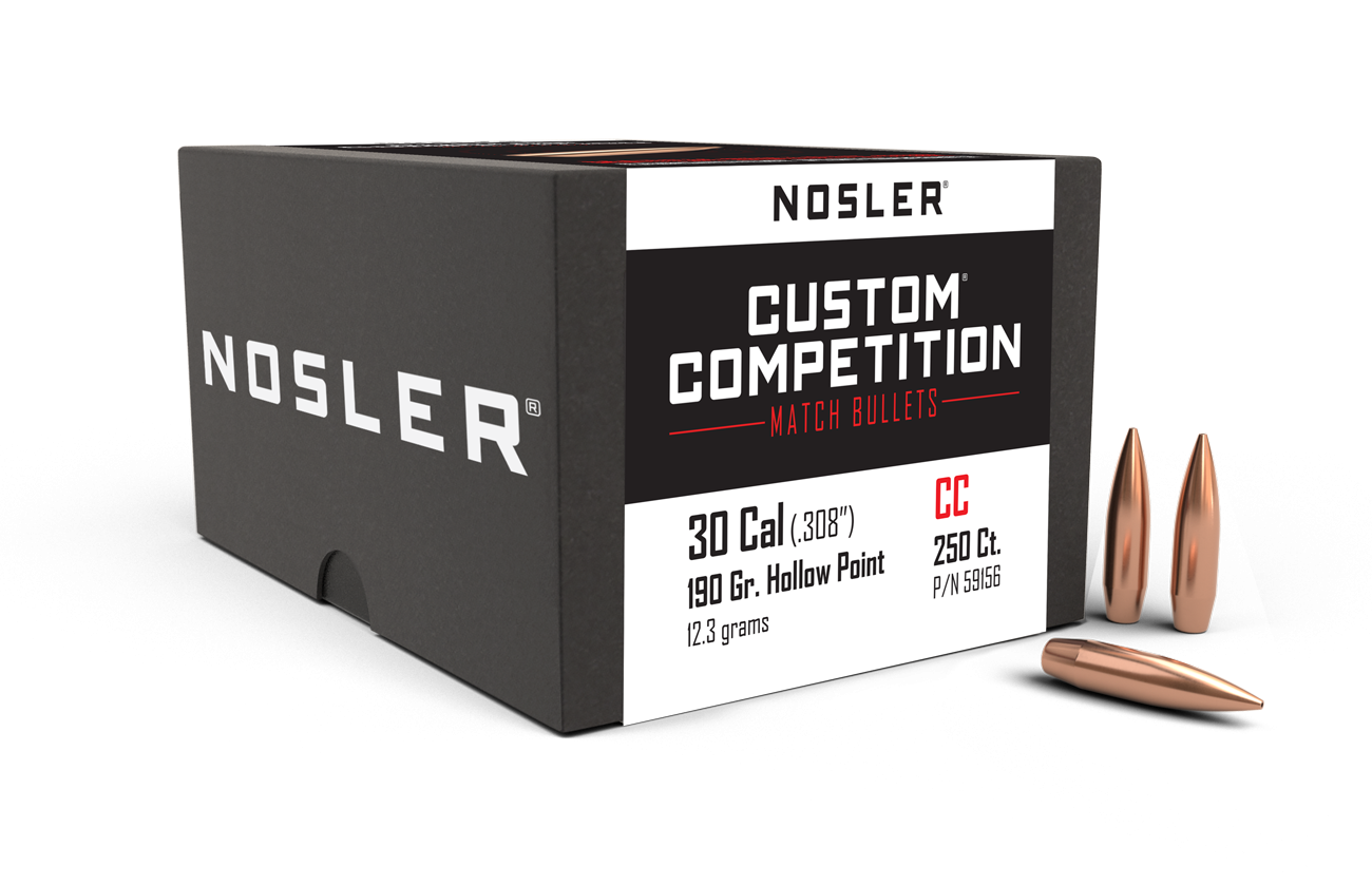 Nosler Custom Competition Bullets 30 Caliber (308 Diameter) 190 Grain Hollow Point Boat Tail (250pk) Nosler Custom Competition Bullets 30 Caliber (308 Diameter) 190 Grain Hollow Point Boat Tail (250pk)