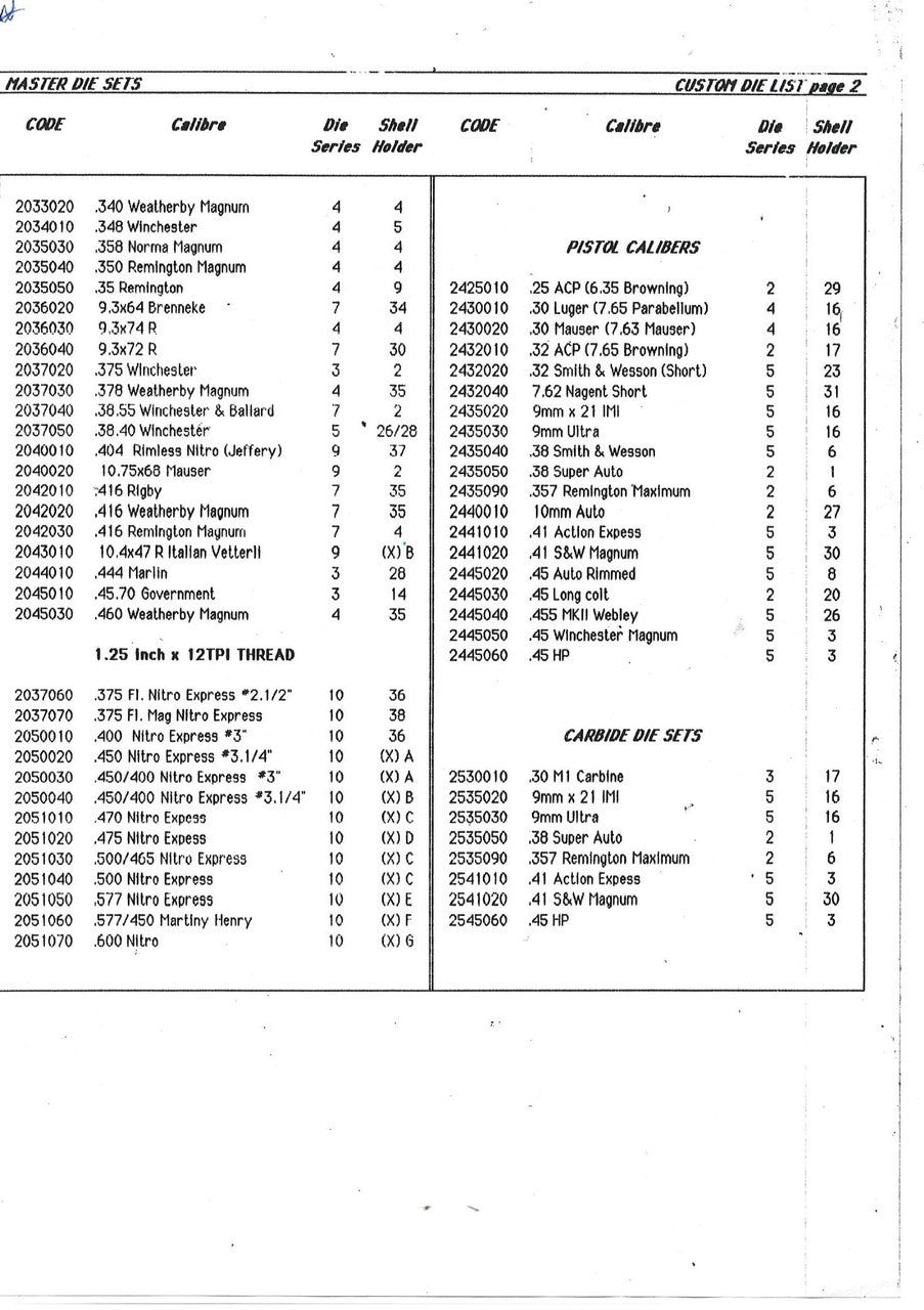 Shell holders to suit all various Master Simplex and standard 7/8 die sets. Please hover your mouse over the chart sizes for an enhanced image.