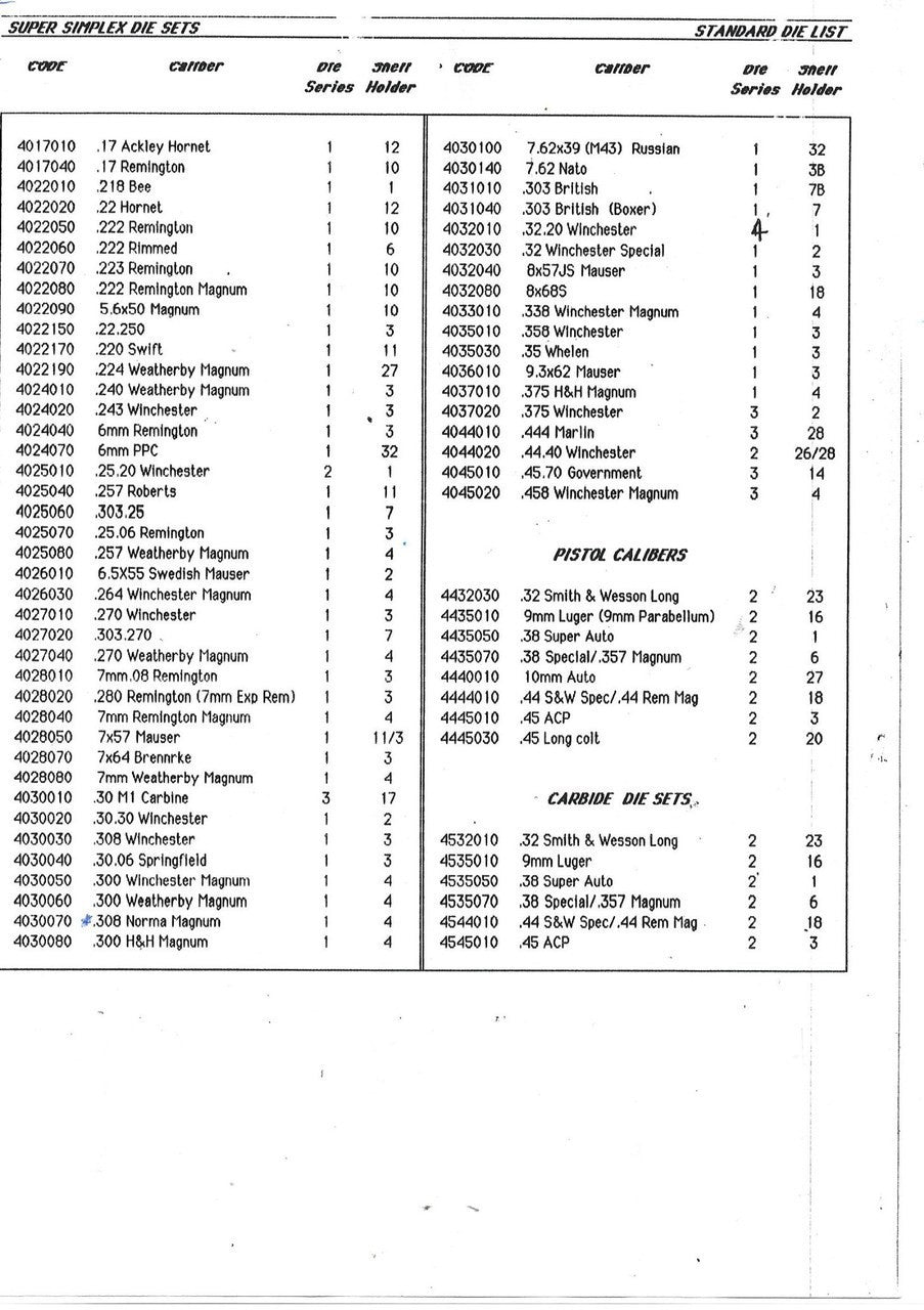Shell Holders to suit Super Simplex Die Sets. Please hover your mouse over the chart sizes for an enhanced image.