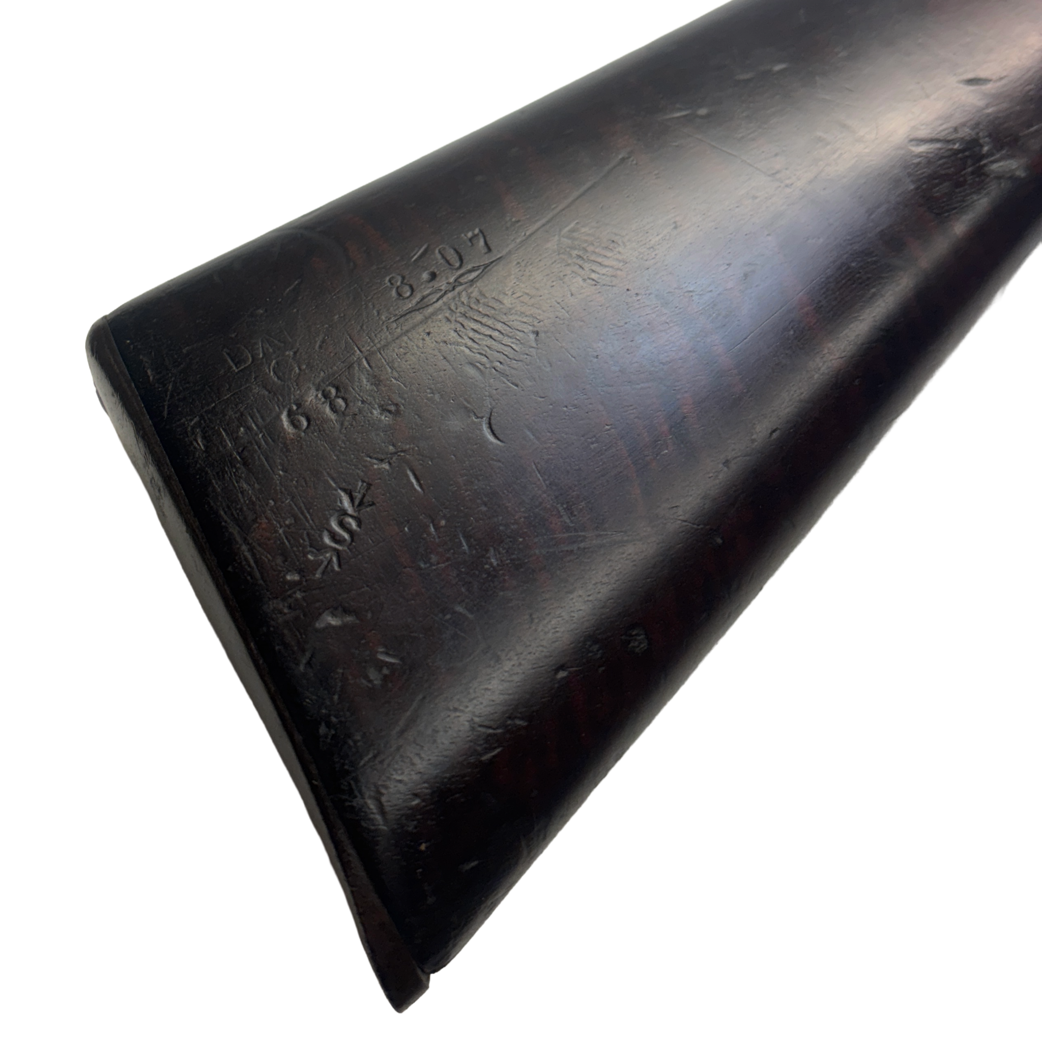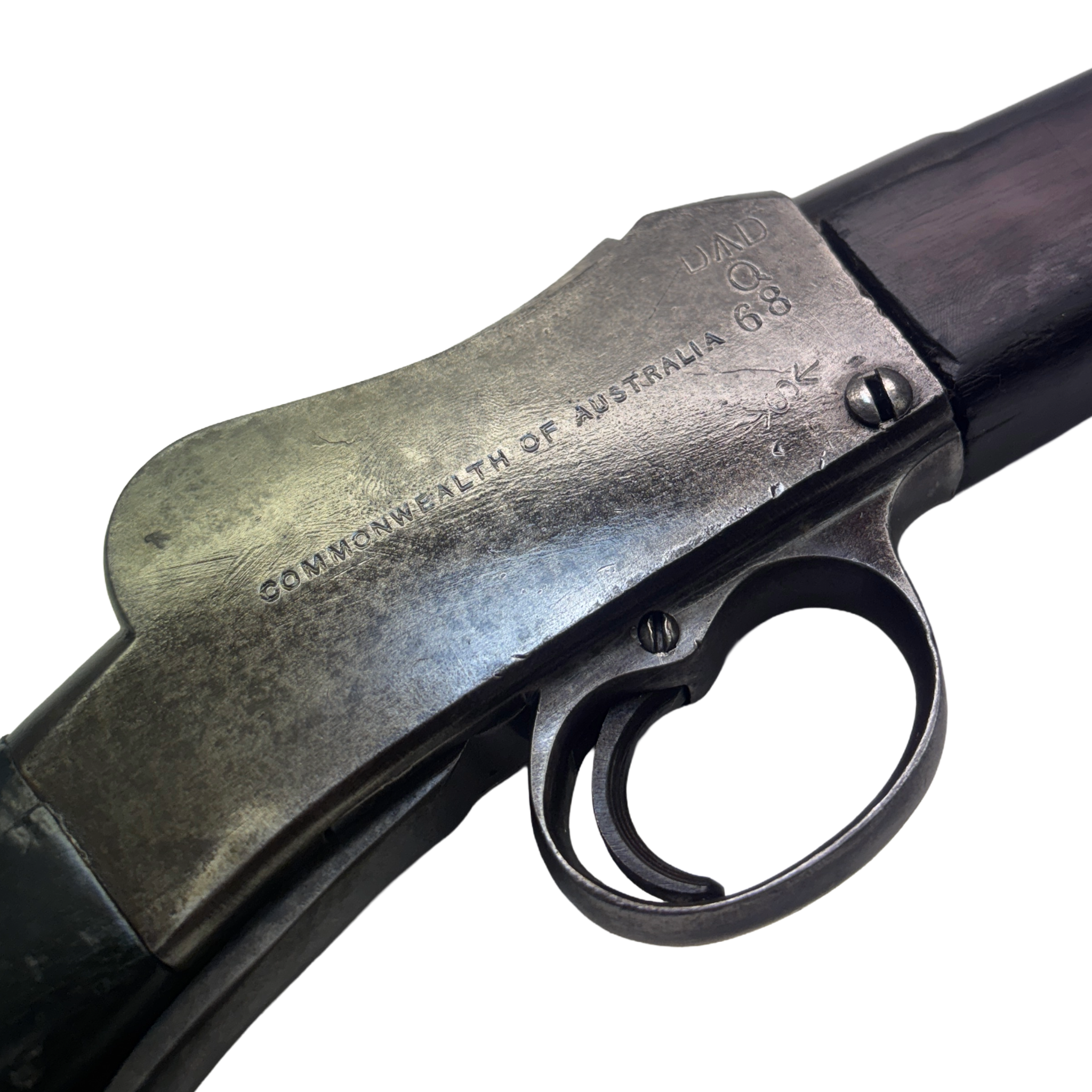 - This rifle was issued in Queensland in August of 1907, with the right-hand side of the receiver stamped "D🡱D Q 68" while the butt stock bears the date "8.07" and the text "D🡱D Q 68."