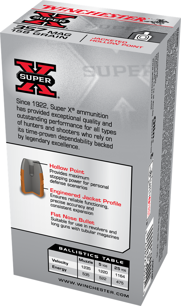 Winchester Super-X Ammunition 357 Magnum 158 Grain Jacketed Hollow Point (50pk) Winchester Super-X Ammunition 357 Magnum 158 Grain Jacketed Hollow Point (50pk)