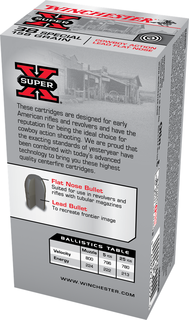 Winchester Super-X Cowboy Ammunition 38 Special 158 Grain Lead Flat Nose (50pk) Winchester Super-X Cowboy Ammunition 38 Special 158 Grain Lead Flat Nose (50pk)