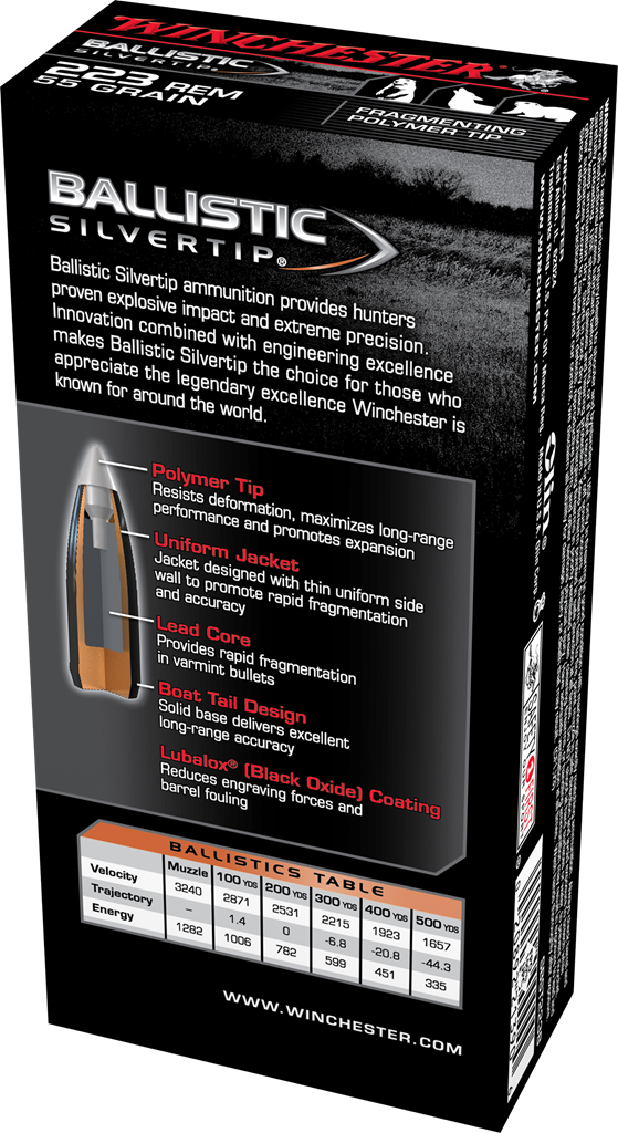 Winchester Ballistic Silvertip Ammunition 223 Remington 55 Grain Polymer Tip (20pk)