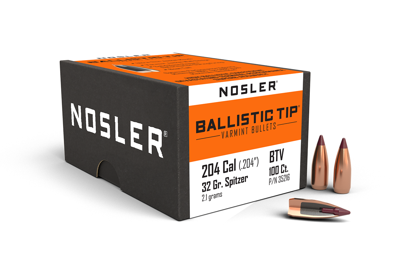 Nosler Ballistic Tip Varmint Bullets 20 Caliber (204 Diameter) 32 Grain Spitzer (100pk)