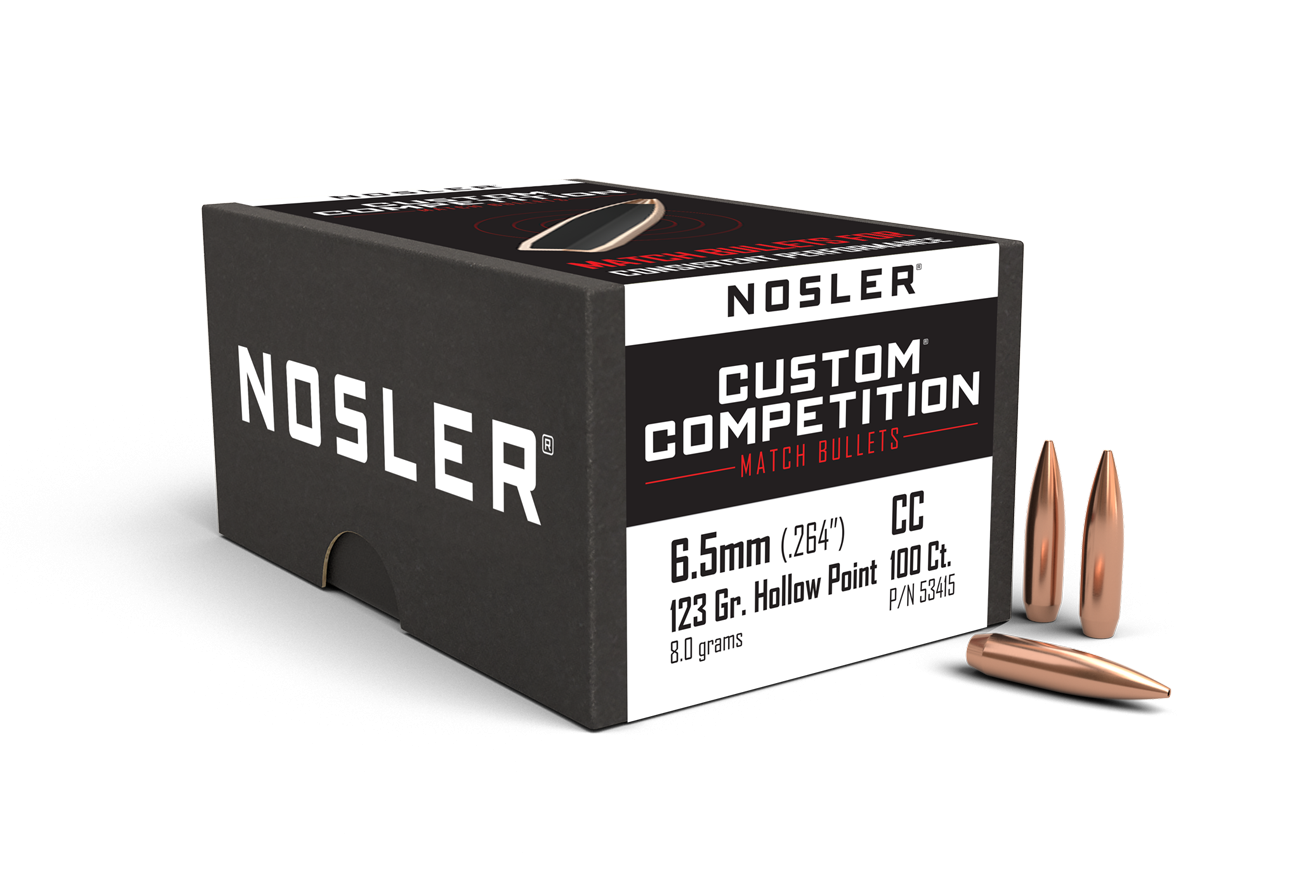 Nosler Custom Competition Bullets 264 Caliber, 6.5mm (264 Diameter) 123 Grain Hollow Point Boat Tail (100pk) Nosler Custom Competition Bullets 264 Caliber, 6.5mm (264 Diameter) 123 Grain Hollow Point Boat Tail (100pk)