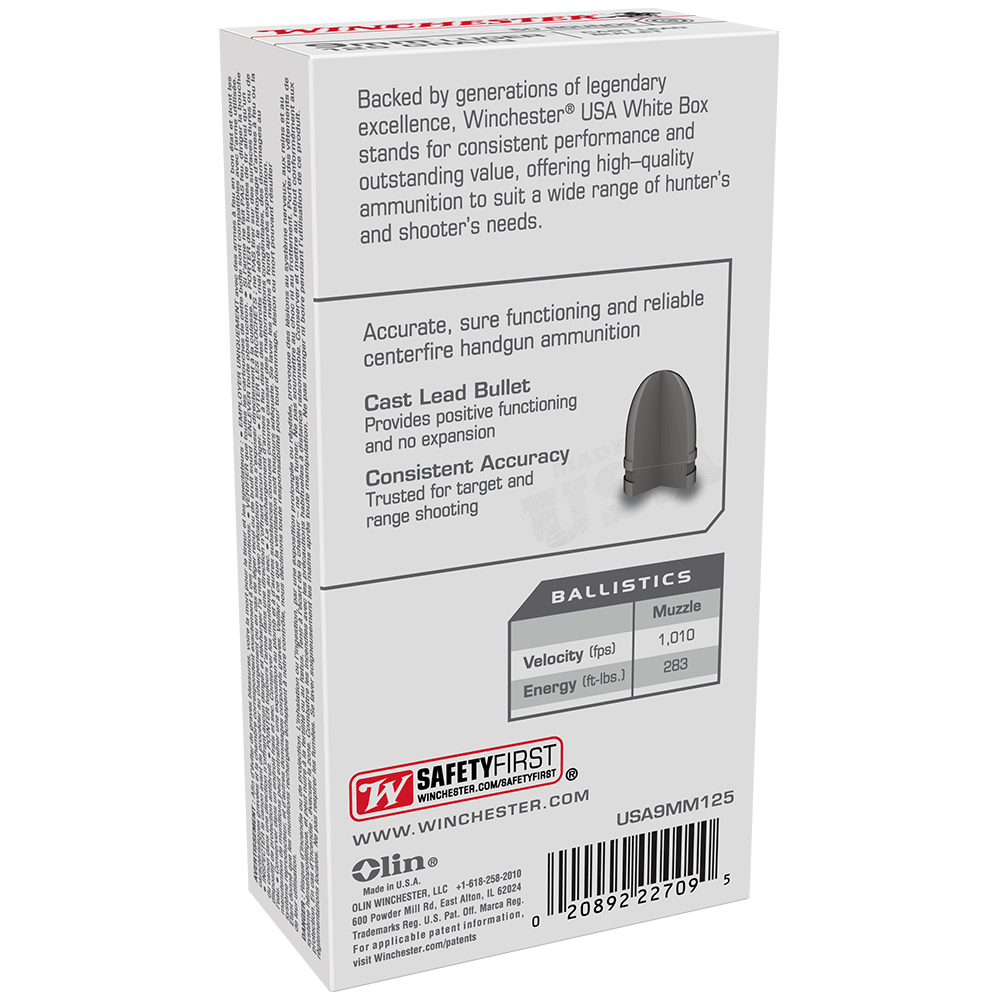 Winchester USA White Box Ammunition 9mm Luger 125 Grain Lead Round Nose (50pk)