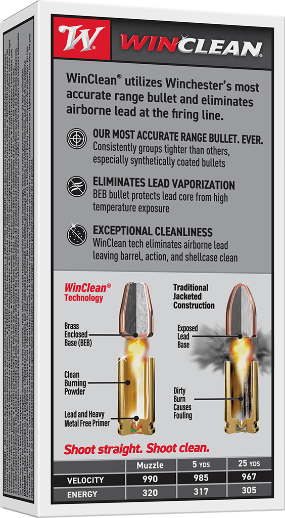 Winchester® Ammunition's WinClean® line of ammunition utilizes Winchester’s most accurate range bullet, while simultaneously eliminating airborne lead at the firing line.